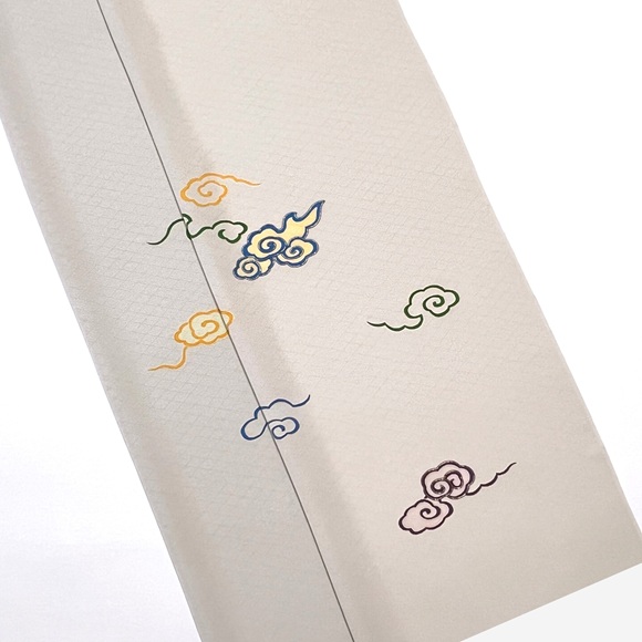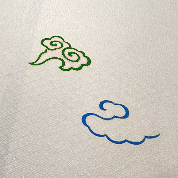 薄灰色地に、手描きと手刺繍(金駒)で表した「瑞雲」