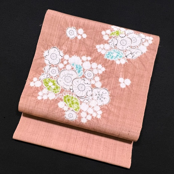 越後小千谷の真綿紬に辻が花を表したお洒落用の名古屋帯です。