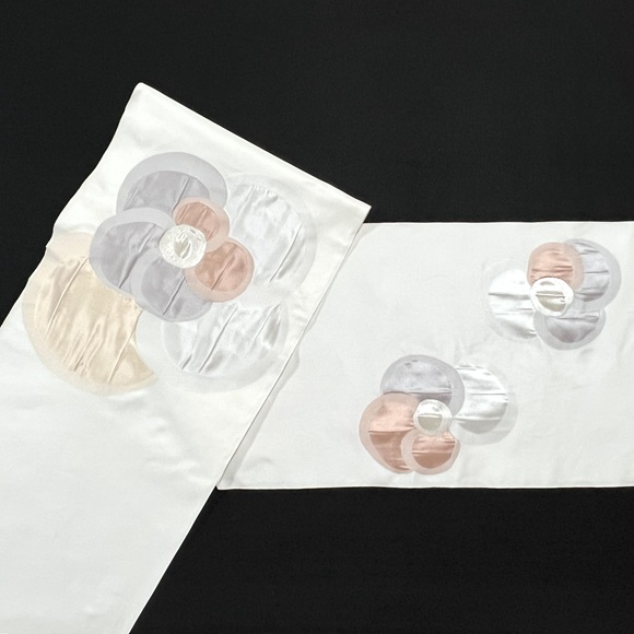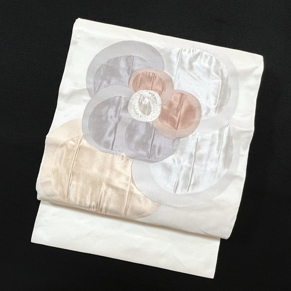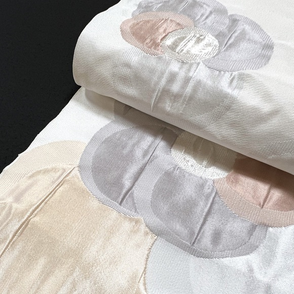 貝花文と名付けられた膨れ織りの九寸名古屋帯。