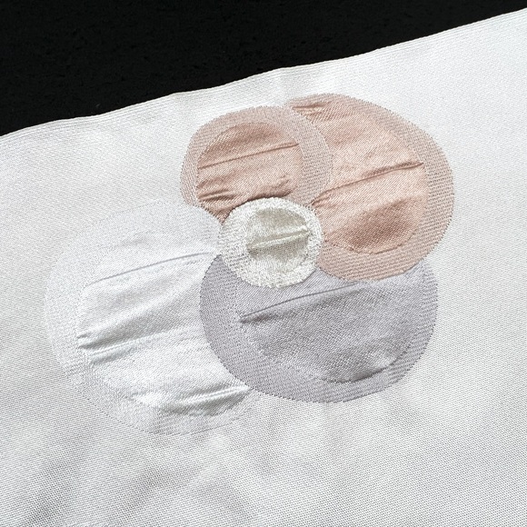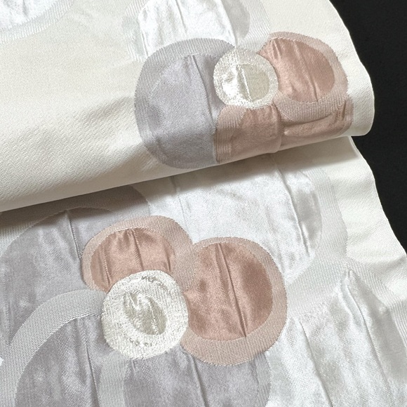 白地に濃淡のグレーや白茶のシックなトーンで織りあげられたこの名古屋帯は透明感があり美しく、洛風林ならではの逸品でございます。