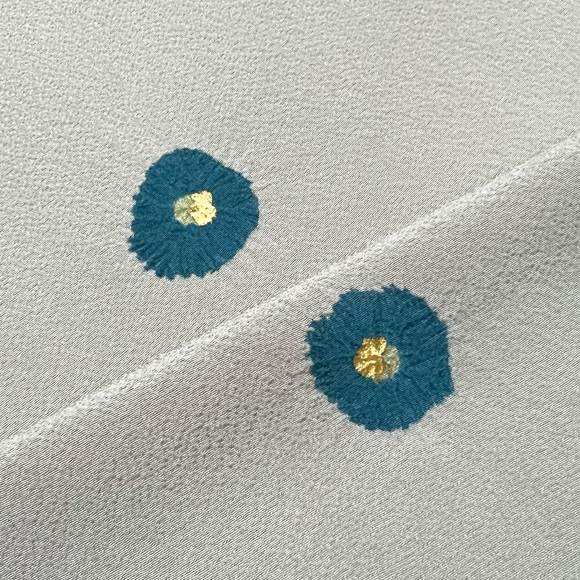 しかし今回は敢えて椿を浅葱色、そして地色は薄鼠にしましてクールで都会的な雰囲気を表現しました。