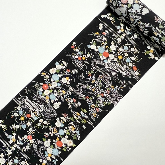 黒地に白上げと青・朱・緑・黄色、そして染疋田で表された御所解き文様は、優雅でホント美しい。