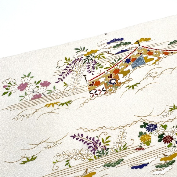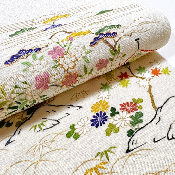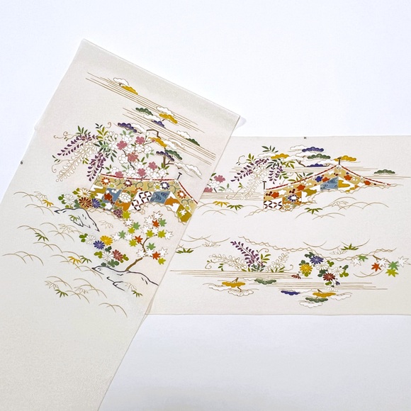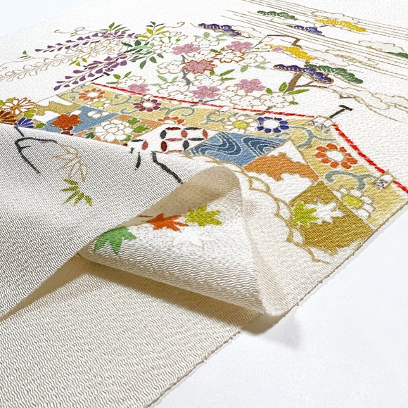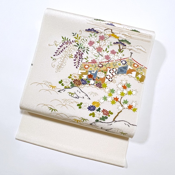 思わず京都の四季を思い浮かばせる素敵な手描きと手刺繍のお洒落帯でございます。