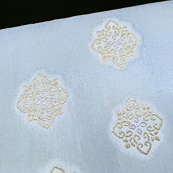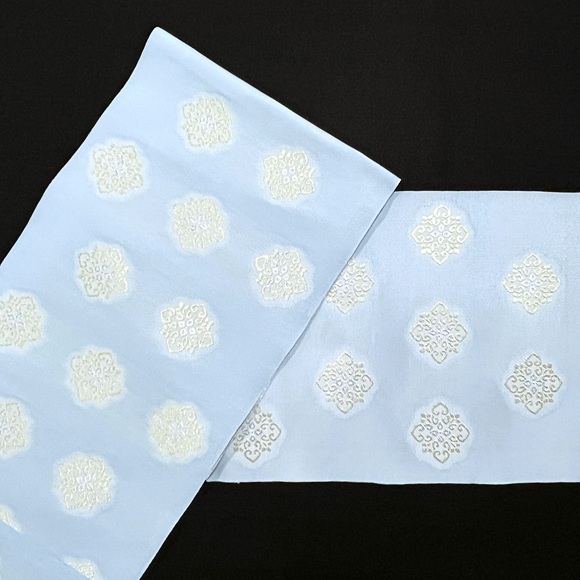 爽やかな水縹色の地色に控えめな金銀で図案化された唐花文様が見事に表現されております。