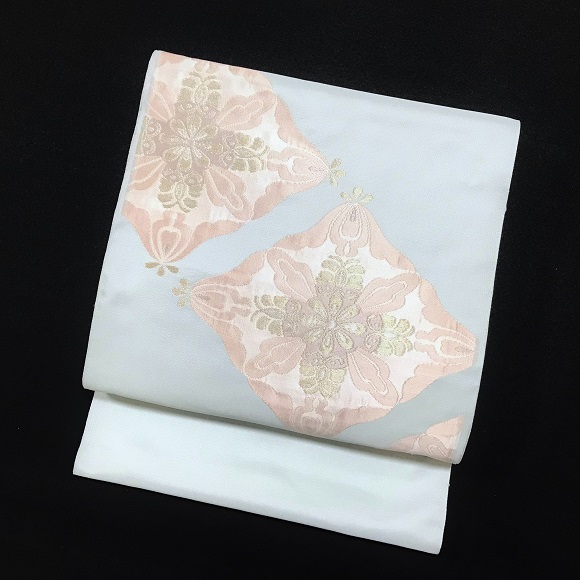 はんなりとした色と質感のこの名古屋帯は、小紋やお召し、色無地等に最適で軽い付下げやスッキリした紬にも合わせていただけます。