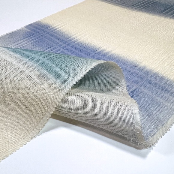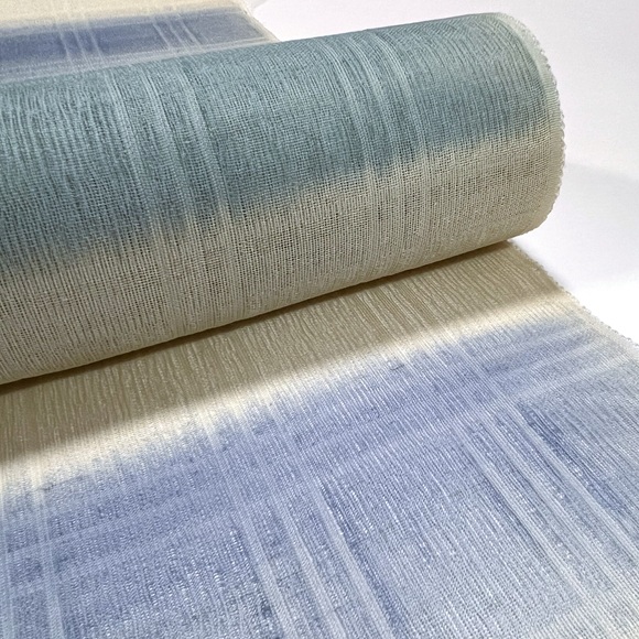 その二重織の柔らかなボリューム感が暈し染めと相まって、単衣の羽織やコートには最適な雰囲気を醸し出してくれます。