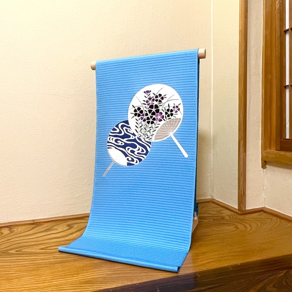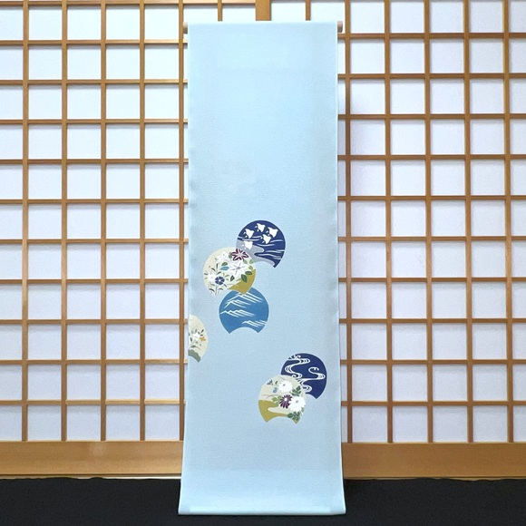 椿散し(浅葱/薄鼠地) 小紋着尺