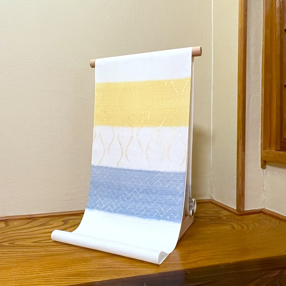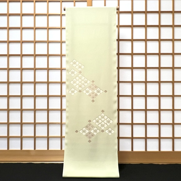 御所解き芒に菊萩(黒地)九寸名古屋帯